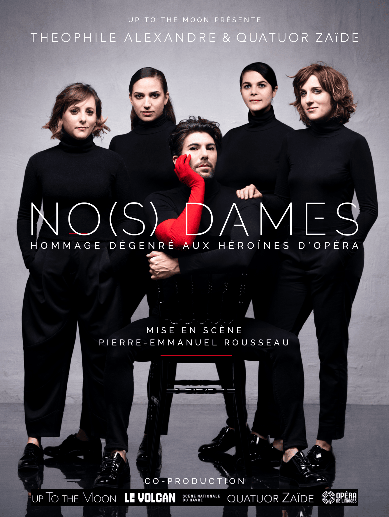 Humanistic lyric project, NO(S) DAMES dare to reverse traditional roles, redistributing musical direction to the women of the Quatuor ZAÏDE, and ladies’ agonies to a man, the countertenor Théophile ALEXANDRE, to celebrate the arias of Carmen, Norma, Manon, Violetta… Beyond their gender fates.